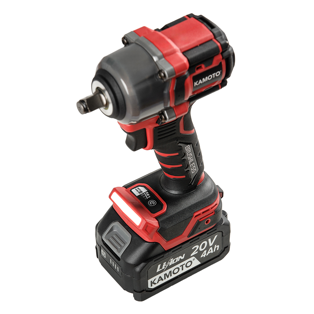 Аккумуляторный гайковёрт с ударным механизмом Kamoto WB600 разработан для выполнения операций по закручиванию и откручиванию крупных крепёжных элементов. Он оснащен бесщеточными двигателями (Brushless Motor), что обеспечивает высокую производительность, надежность и длительный срок службы.